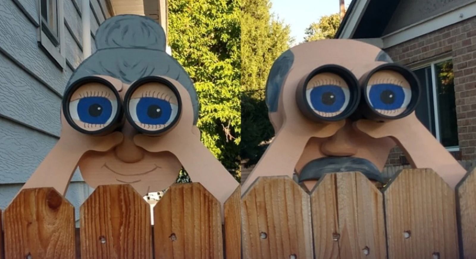 This cute couple looks over your fence to keep track of everything in the neighborhood!👵👴