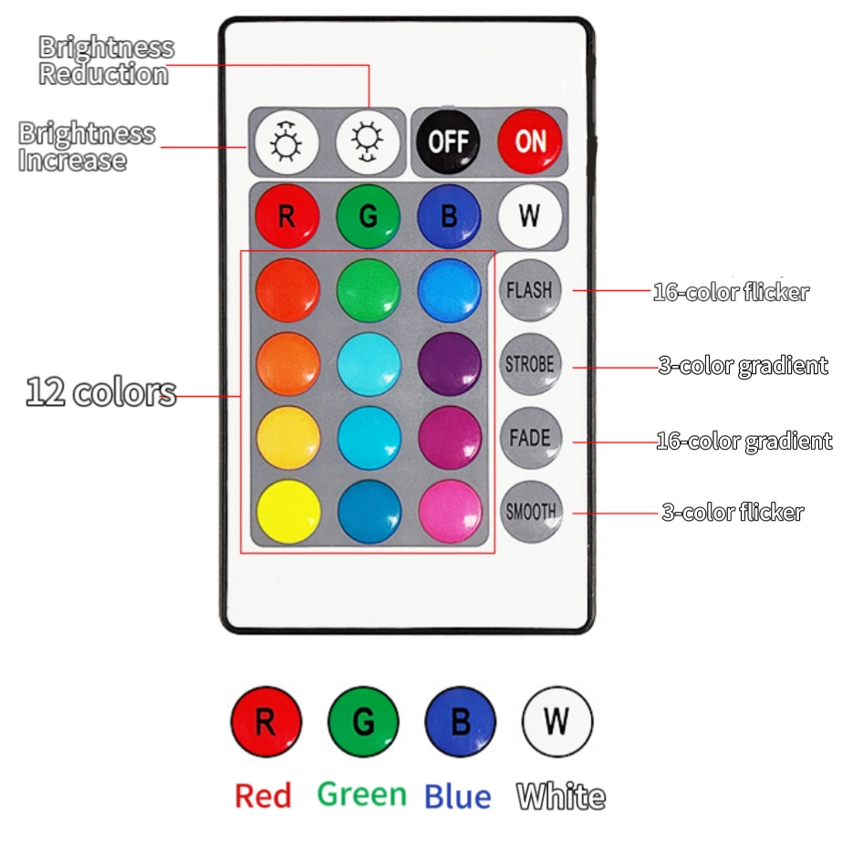 • Remote control: remote control 16 colors