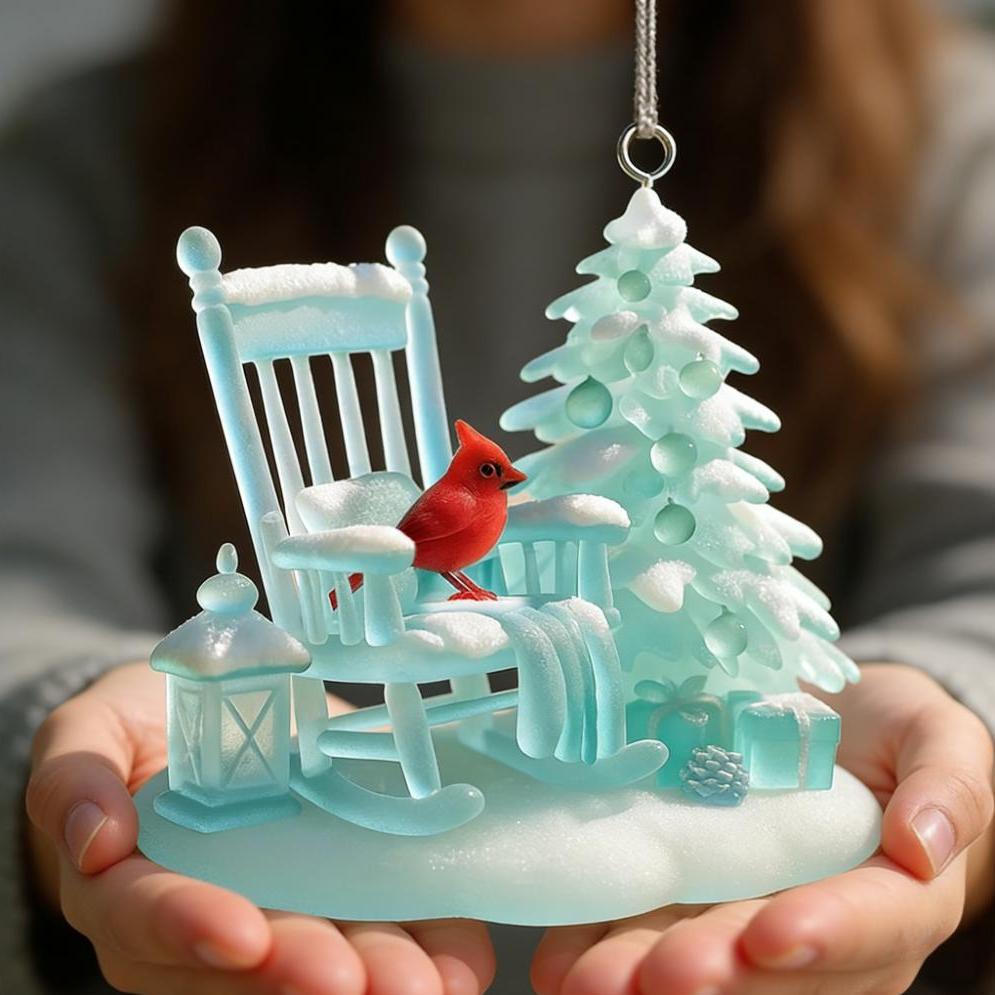 🌊🐦Cardinal Rocking Chair Sea Glass Ornament