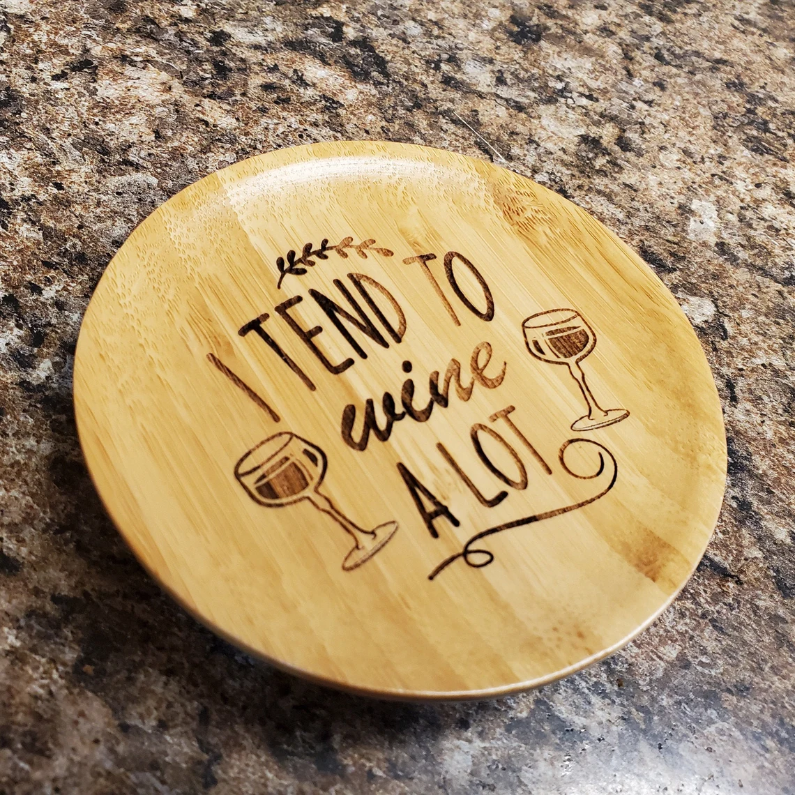 • Versatile Charcuterie Board Topper: This Bamboo Wine Glass Topper Coaster is not just any ordinary coaster; it's a versatile charcuterie board topper. Perfectly sized to fit over your wine glass, it provides a convenient surface for holding your favorite charcuterie snacks while you enjoy your wine.