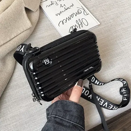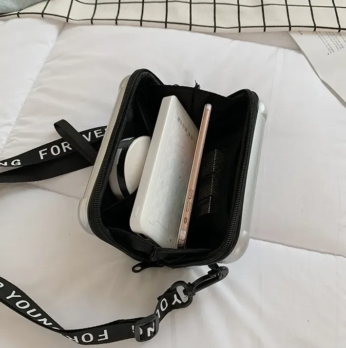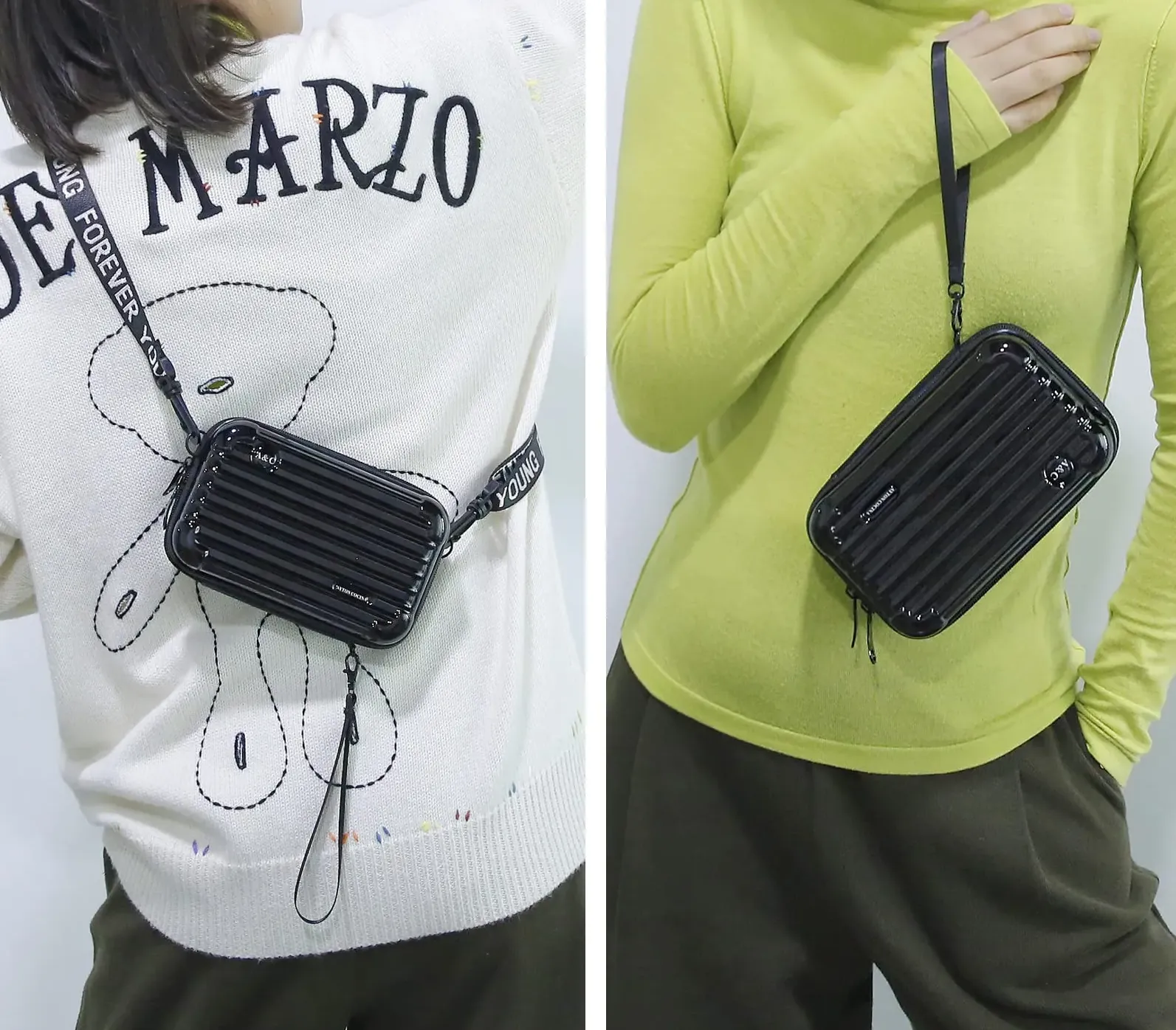 The exterior of this mini suitcase bag is made of PVC material that strikes the perfect balance between hardness and texture. It will not collapse or scratch easily and offers excellent waterproof protection, ensuring your belongings stay dry.
