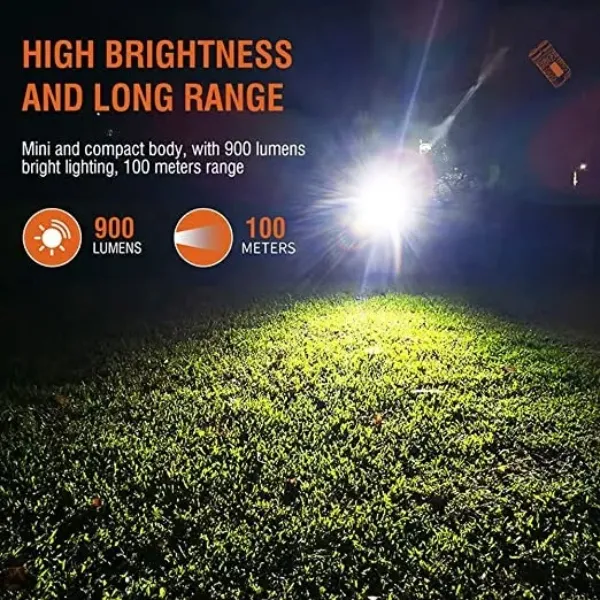 The bright flashlight use 2 powerful LED beads with a brightness of up to 900 lumens, and an Irradiation distance of up to 328ft (100M). Adopt a double lamp design, making the lighting effect and the lighting distance more powerful.
