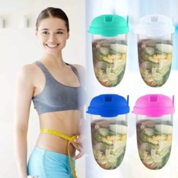Promotes Good Healthy Habits:The Salad Shaker Cup makes eating a healthy salad, fruits, vegetables, nuts, oatmeal, yogurt, etc. more convenient than ever. Simply pour your desired food in the container, fill-up the dressing container with your desired dips and sauces, snap the lid closed, pop-in the fork.