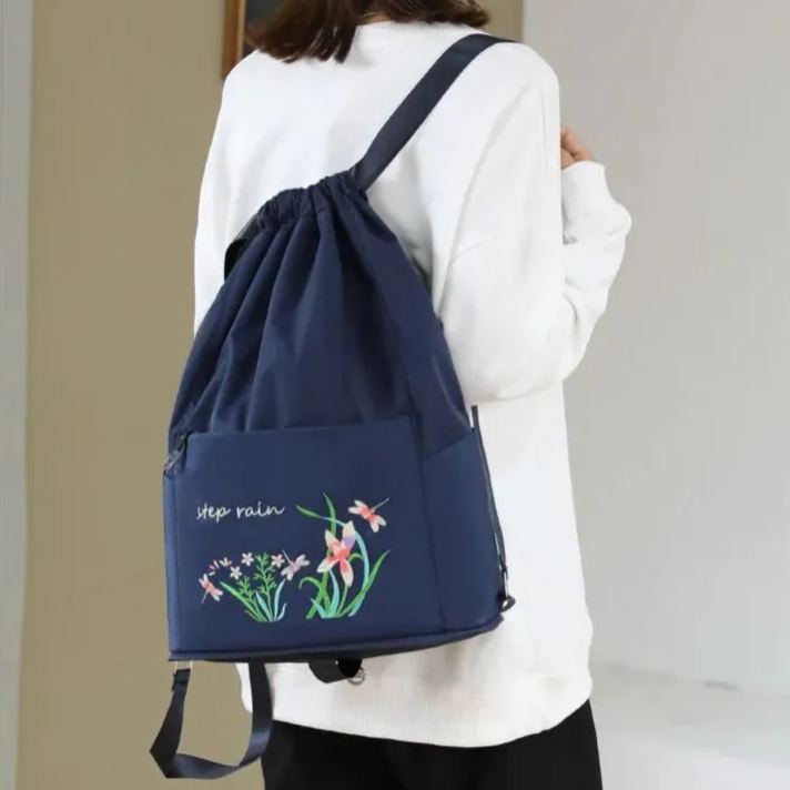 Foldable Waterproof Drawstring Large Capacity Embroidered Backpack