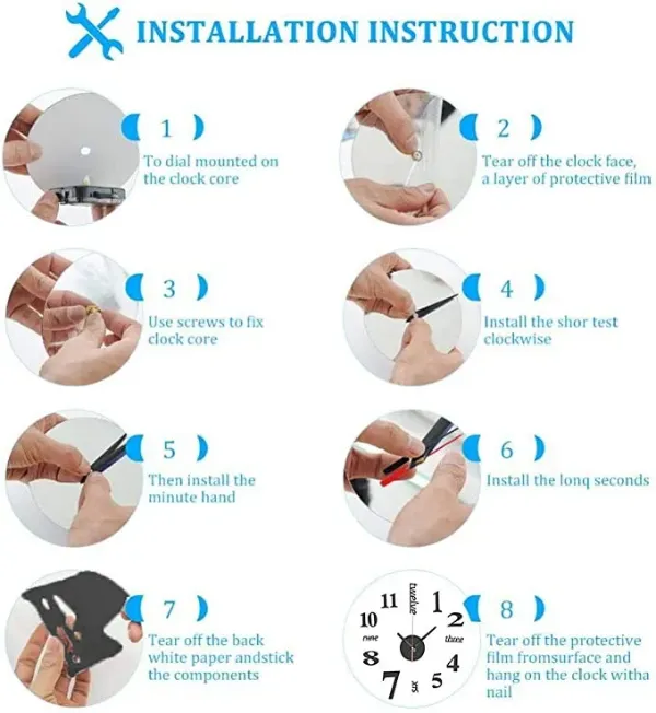 💛3D Design: 3D DIY wall clock sticker, very beautiful and high quality, perfect for modern home decoration. You can measure the size of the clock layout by hand and make it smaller or larger according to your needs.