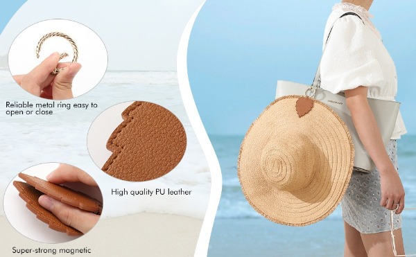 - MAGNETIC HAT CLIP ON BAG: Travel hat clip is equipped with a magnetism attachment, which never loses its magnetic force and gives you more peace of mind.