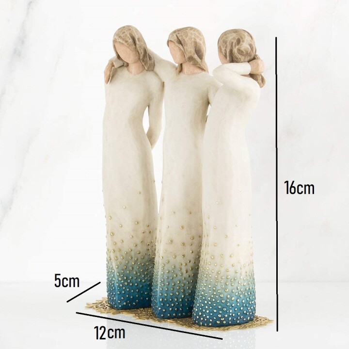 Three-sister figures communicate the close and loving relationships between three sisters, or cousins, or great friends. Women who encourage and support each other through all of life's experiences.